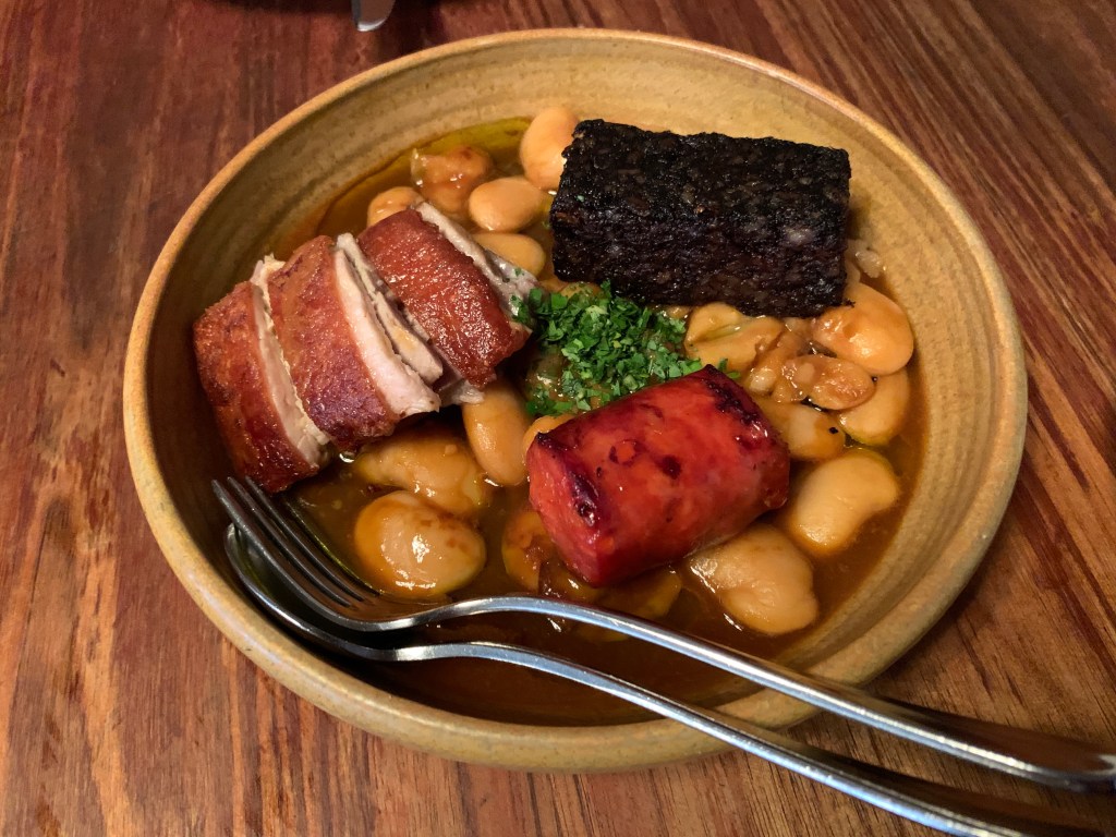 Morcilla, Chorizo and Pork Belly with braise white beans.