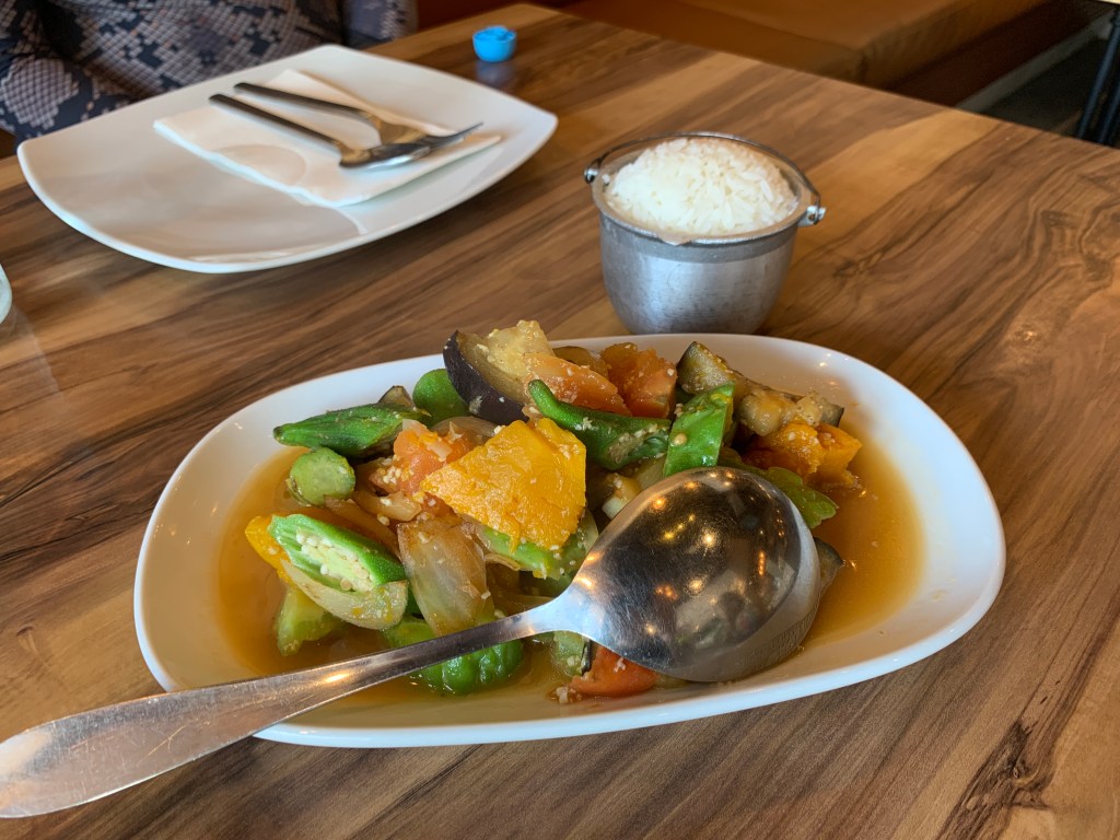 Pinakbet: Sauteed mixed vegies, including okra, pumpkin & eggplant. Tangy and refreshing