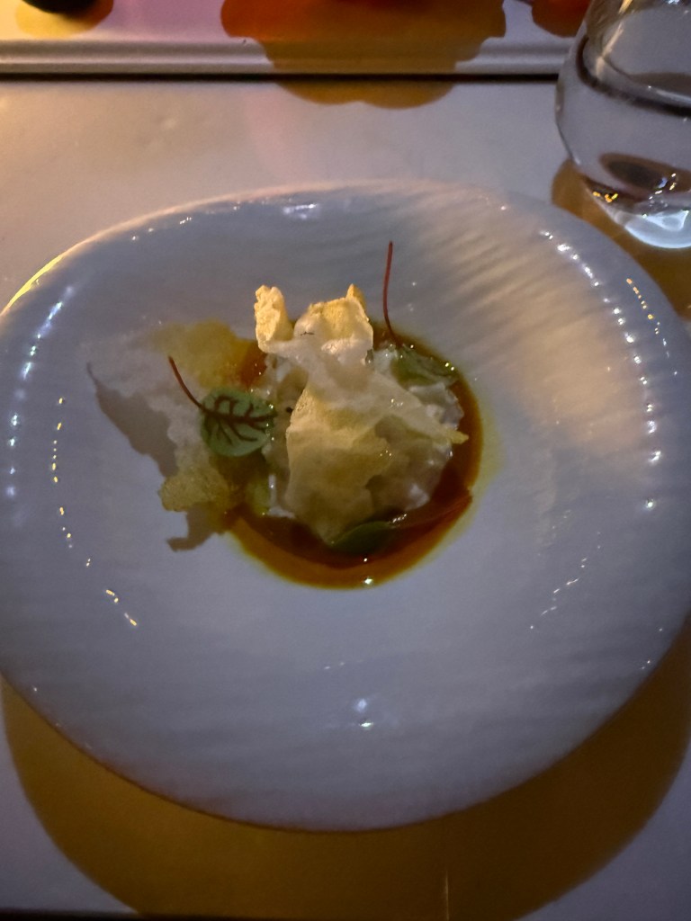 Each course comes with its own bespoke cocktail, created specifically to match that dish. These are thoughtful pairings rather than novelty drinks. A standout early is a brilliant piña colada, balanced and restrained, setting the tone for what follows rather than overpowering it. The house made bread deserves its own mention too. It is excellent, one of those simple pleasures that quietly anchors the more theatrical moments of the meal.